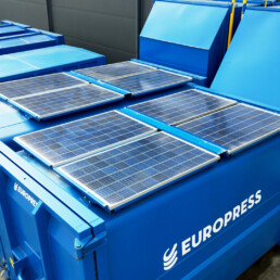 The Europress CombiMax SMARTSolar waste compactor is powered by solar panels and 1-phase mains power. The robust and efficient CombiMax SMARTSolar gets its power from four 300W solar panels located on its roof.
