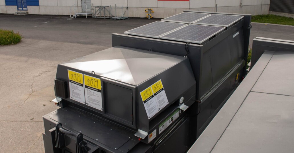 The Europress CombiMax SMARTSolar waste compactor is powered by solar panels and 1-phase mains power. The robust and efficient CombiMax SMARTSolar gets its power from four 300W solar panels located on its roof.