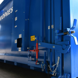 The Europress CombiMax Twin waste compactor has two infeeds for separate waste containers. In the CombiMax Twin waste press, the press section is enclosed in the container, ensuring cleanliness at the site. The CombiMax Twin waste compactor is designed for a variety of