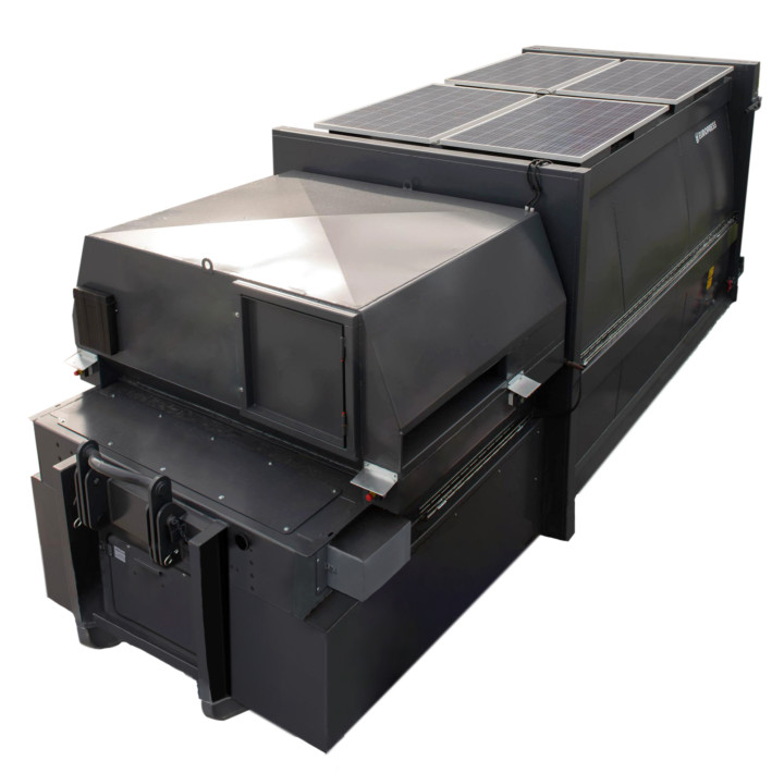 The Europress CombiMax SMARTSolar waste compactor is powered by solar panels and 1-phase mains power.