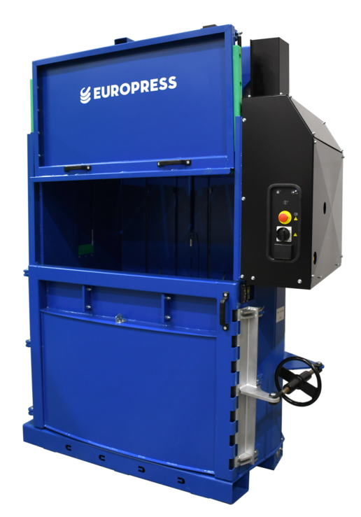 The Europress B-Max is an effective vertical waste baler with a downwards closing door.