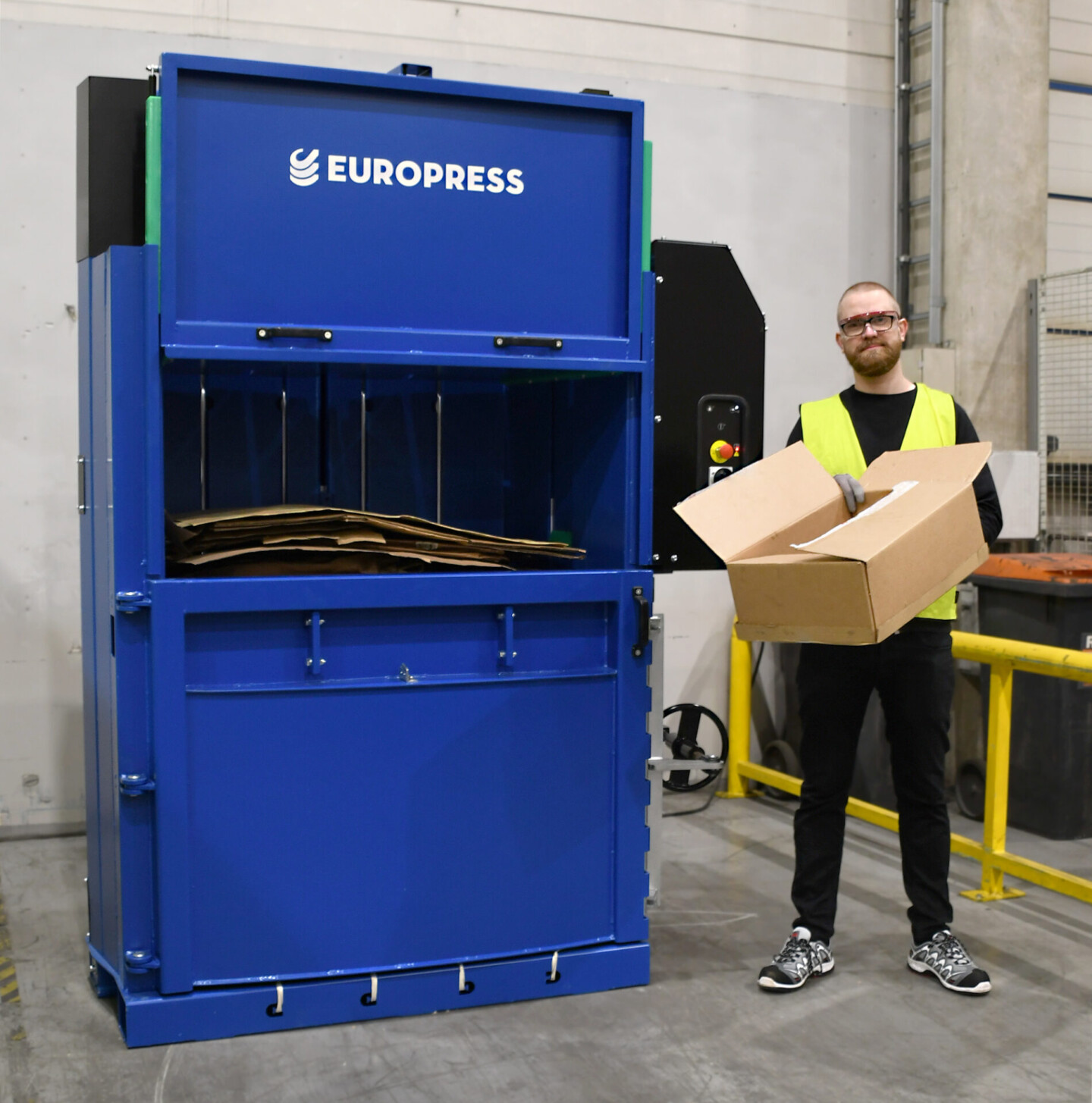 Europress B-Maxin suuri syöttöaukko ja nopea 34 sekunnin iskuaika takaavat kartongin ja muovin helpon puristamisen. B-Max mahdollistaa myös puolikkaan paalin tekemisen. Paali mahtuu eurolavalle ja sen koko on mitoitettu kansainvälisten standardien mukaisesti varastointi ja kuljetustarpeet huomioiden. Suuri liukuovi avautuu automaattisesti, joten se on kätevä käyttää.