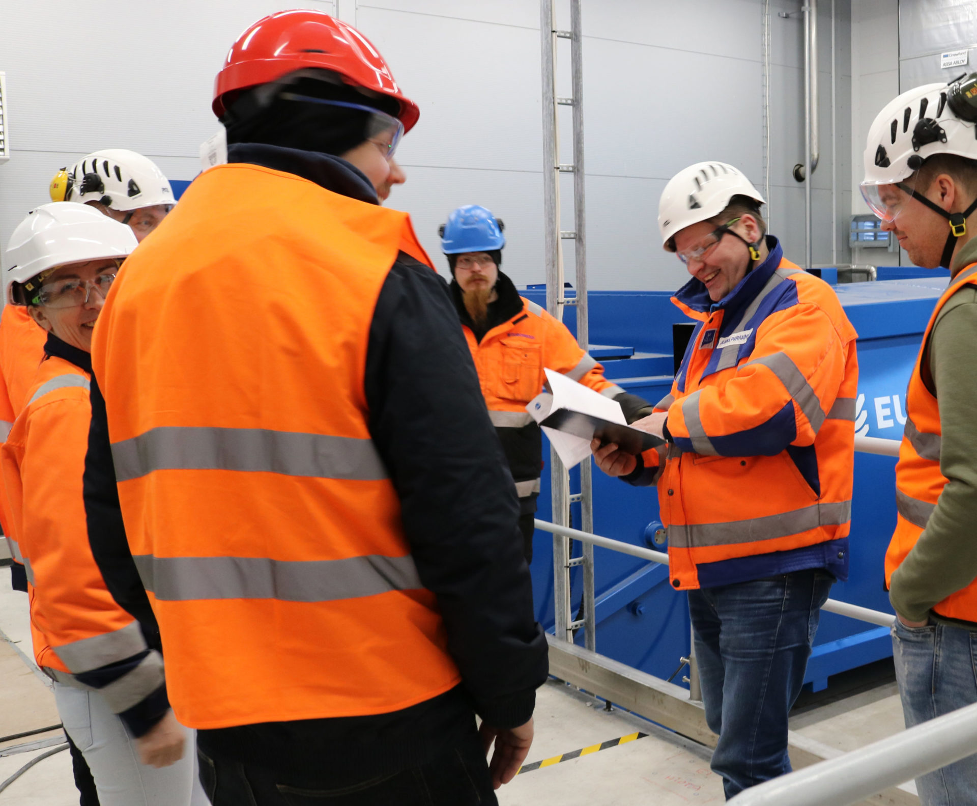 – Jätepisteiden rakentaminen on sujunut hyvin. Europressin ihmisten kanssa on ollut helppoa suunnitella toimivaa kokonaisuutta ja viilata yksityiskohtia, kiittelee Parviainen. Tarkastuksen jälkeen jätehuoneeseen virtaa henkilökuntaa innostuneen puheensorinan saattelemana. Käyttöopastuksen vetävä Lindblom saa yleisökseen selvästi motivoituneen porukan.