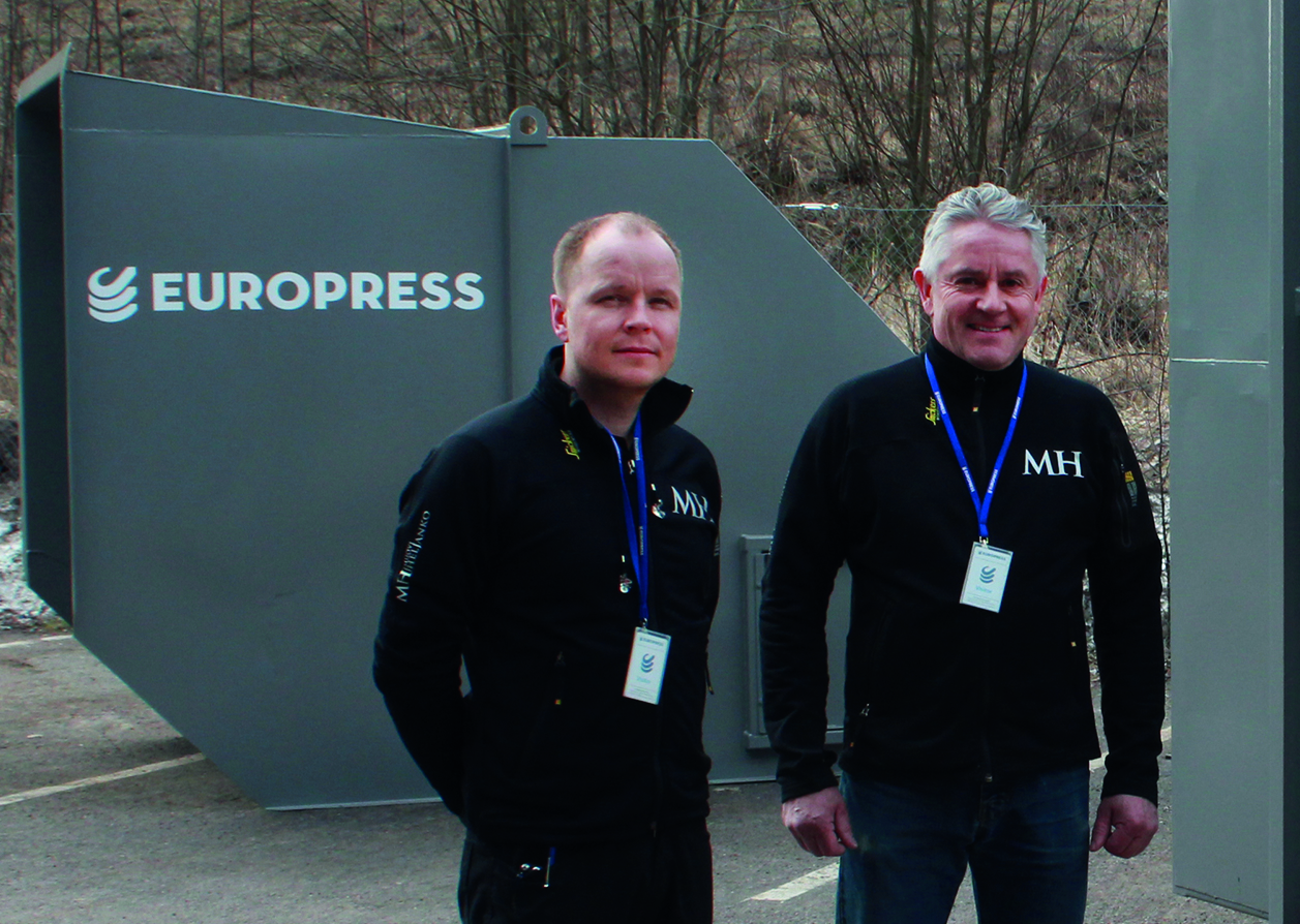 Muovi-Heljangon tehtaanjohtaja Jyrki Manninen ja kunnossapitopäällikkö Markus Tuovinen kävivät tehtaallamme tarkastamassa laitteen ennen toimitusta. DuoMax-vaakamäntäpuristin irrotettavalla 30 m3 säiliöllä valittiin, kun etsittiin PET-muovin keräykseen ratkaisua. Aluksi pohdittiin ruuvipuristinta, josta on vastaavanlaisessa käytössä ollut hyviä kokemuksia. Vaihtoehtoja läpikäydessä Europressin käytetyt puristimet nousivat yhdeksi vaihtoehdoksi ja pohdintojen jälkeen käytetty ja kunnostettu DuoMax-puristin osoittautui erinomaiseksi valinnaksi. Käytettyyn laitteeseen päätyminen ja koko hankintaprosessi sujuivat hienosti.