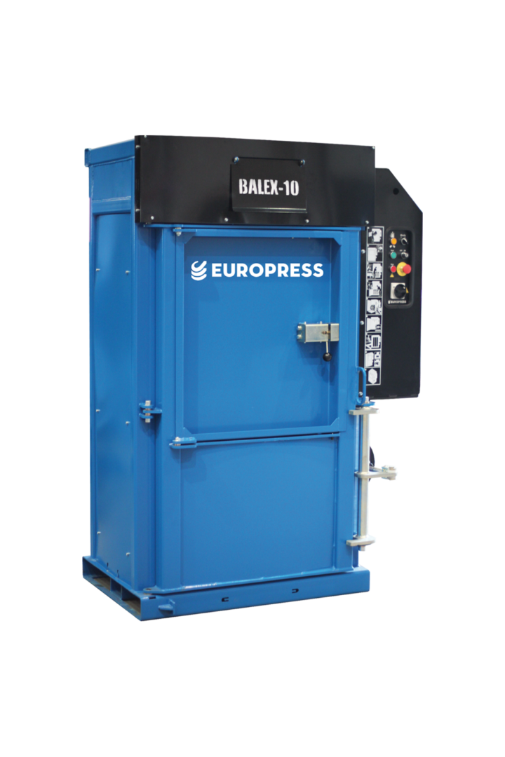 Europress Balex-10 är en kompakt vertikal balpress för ett brett spektrum av användningsområden. Den stora inmatningsöppningen och den korta cykeltiden på endast 15 sekunder säkerställer enkel komprimering av olika sorters material. Med en komprimeringskraft på 10 ton producerar Balex-10 väldigt täta balar med vikt på upp till 110 kg, som likväl är tillräckligt kompakta för att passa in i rullburar.